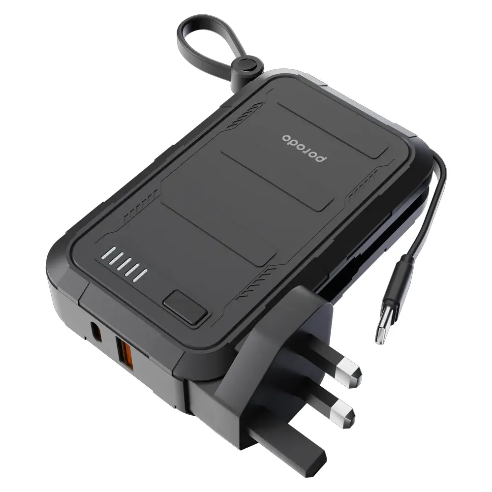 Porodo 10000mAh Wall Charger Power Bank With Type-C Cable UK Plug PD-PBFCH051-BK