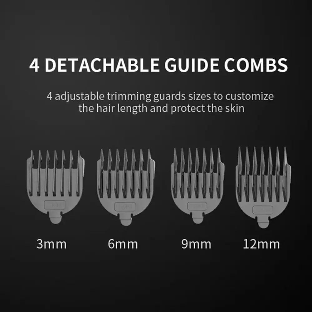 شانههای محدود کننده ۴ عددی: به همراه دستگاه، ۴ عدد شانه محدود کننده (Limited Combs) عرضه میشود که امکان تنظیم طولهای مختلف اصلاح را فراهم کرده و برای سایهزنی (Fading) و مدلدهی به موی سر ایدهآل هستند.