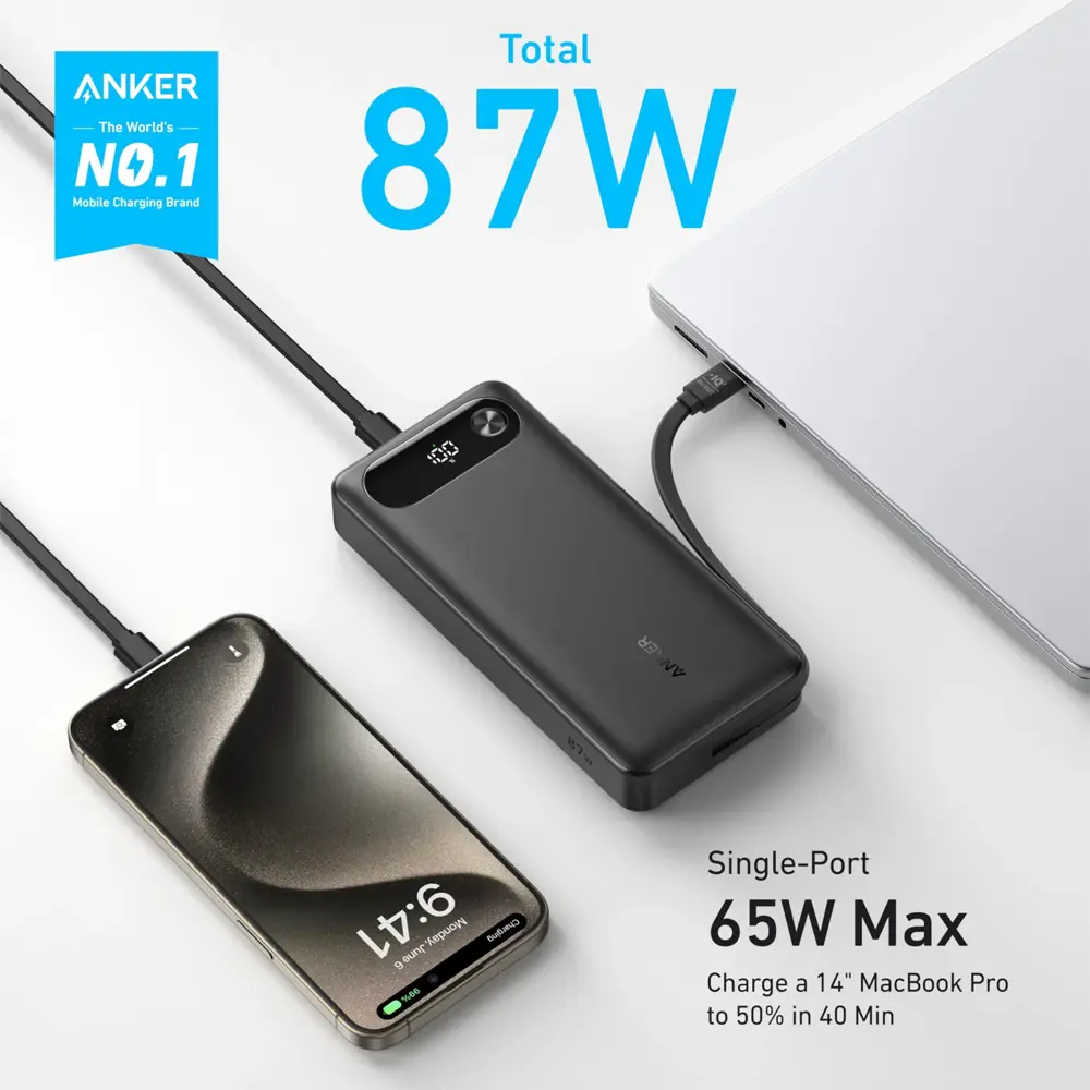Anker Power Bank 20K 87W Built-In USB-C Cable A1383