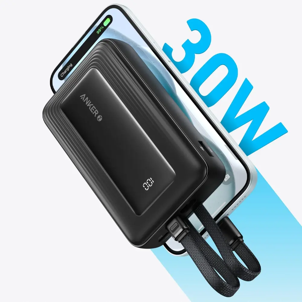 Anker Zolo Power Bank 20K 30W Built-In USB-C and Lightning Cable A1681