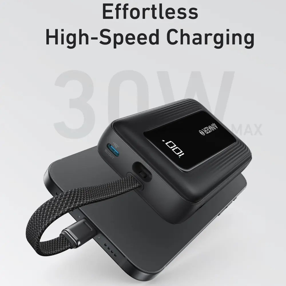 Anker Zolo Power Bank 20K 30W Built-In USB-C Cable A1689