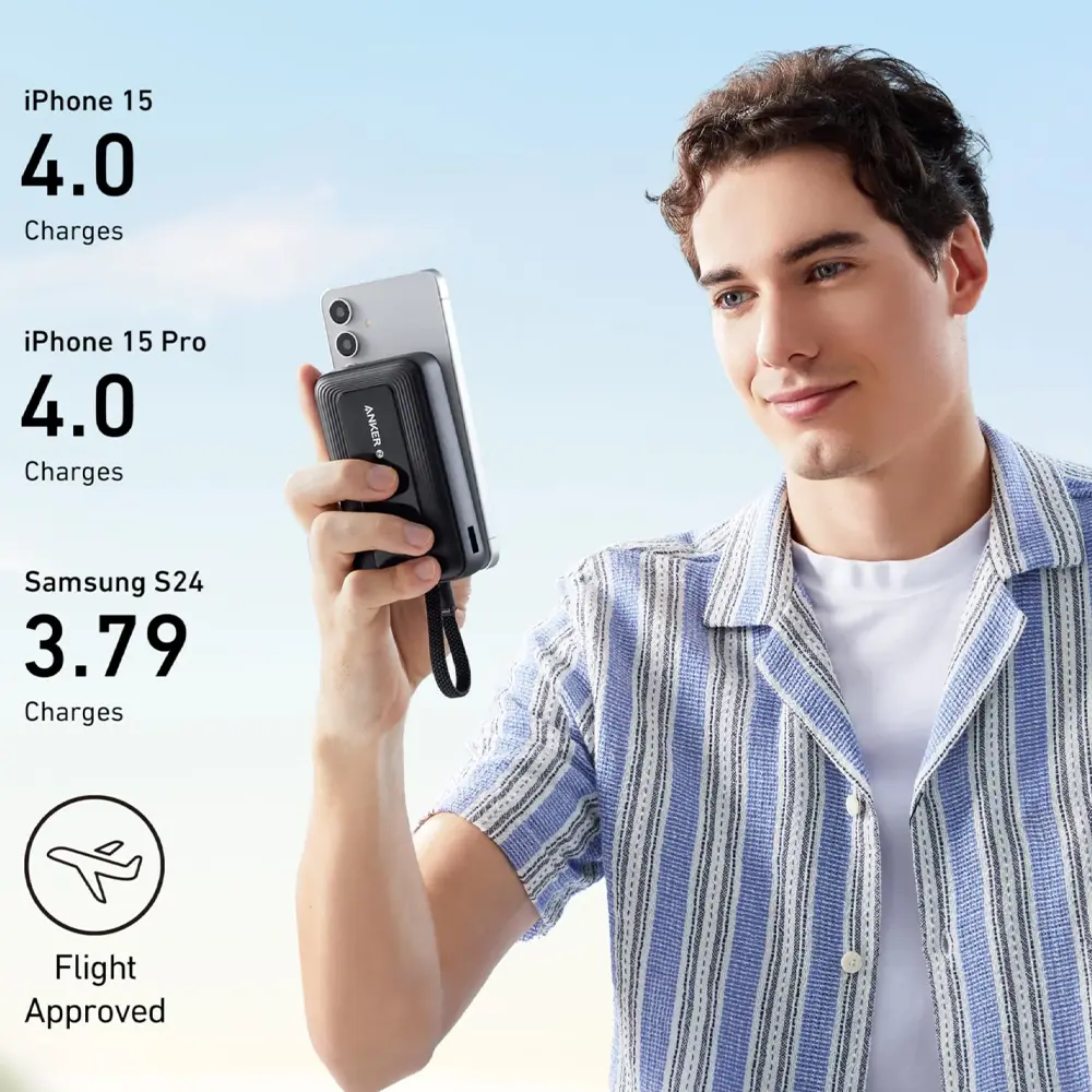 ظرفیت 20000 میلیآمپر ساعت مدل A1689 این امکان را فراهم میآورد تا بتوانید یک پرچمدار مدرن (مانند آیفون ۱۵ یا گلکسی S24) را تقریباً ۳ تا ۴ مرتبه کامل شارژ کنید. این توان بالا به شما امکان میدهد تا در طول یک سفر کاری یا طبیعتگردی چندروزه، کاملاً از بابت اتمام شارژ گوشی موبایل، تبلت یا هدفونهای خود آسودهخاطر باشید. تمرکز مهندسی انکر بر روی پایداری ظرفیت خروجی، تضمین میکند که حتی تحت فشار و استفاده همزمان از چند پورت، افت ولتاژ ناگهانی رخ ندهد. برای کاربرانی که همزمان از گوشی، هندزفری و ساعت هوشمند استفاده میکنند، قابلیت اتصال همزمان سه دستگاه به این پاوربانک فراهم است.