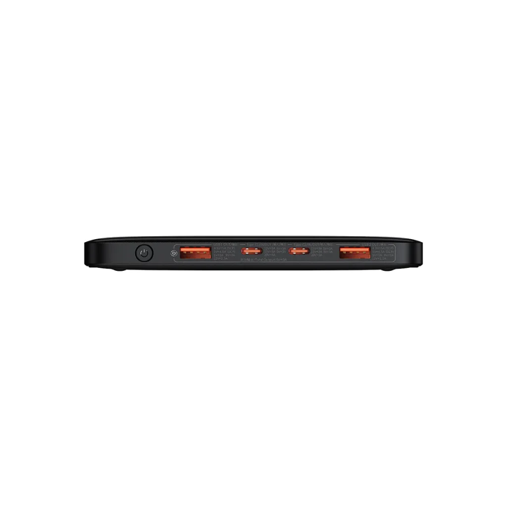 پاور بانک بیسوس Blade مدل PPBLD100-X با کد فنی PPBL000201 برنده جایزه reddot 2022 با امکانات بینظیر خود، یکی از پیشرفتهترین محصولات بازار به شمار میرود. از ABS و پلی کربنات نسوز مقاوم در برابر حرارت ساخته شده باعث می شود تا محصول در مقابل افزایش حرارت دارای ایمنی قابل توجهی باشد. روی دستگاه یک صفحه نمایش LED اصلاعات مربوط به میزان شارژ باقی مانده، ولتاژ و شدت جریان و همچنین زمان شارژ را به صورت لحظه ای نمایش می هد. بدنه به صورت شگفت انگیزی باریک ساخته شده و تنها 18 میلیمتر قطر دارد. در یک سمت یک دکمه گرد و 2 خروجی USB-A به همراه 2 درگاه Type-C با قابلیت استفاده همزمان به عنوان ورودی و خروجی قرار دارد. شارژر همراه بیسوس Baseus PPBL000201 دارای ابعاد 18×143×162 میلیمتر و وزن آن 490 گرم بوده و به راحتی قابل حمل در کیف و کوله شما است.