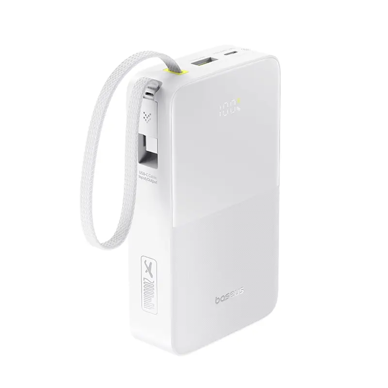 پاوربانک 20000 بیسوس سری EnerFill FC51 Bipow 2 Pro مدل PPBD2P-2022 توان 22.5W همراه با کابل تایپ سی متصل به بدنه، در رنگ مشکی با کد فنی E0027701 و رنگ سفید E0027700 در ابعاد 21×39×122 میلیمتر و وزن 365 گرم طراحی و تولید کرده است. از مهمترین ویژگی های این شارژر همراه، سازگاری با آیفون سری 16، گلکسی S25/S24، آیپد، پیکسل، ایرپادز، ساعتهای هوشمندو سیستمهای حفاظتی 8 لایه پیشرفته شامل محافظت در برابر اتصال کوتاه، افزایش جریان، دما و شارژ بیشازحد می باشد. این ویژگیها طول عمر پاوربانک و دستگاههای شما را افزایش میدهند. همچنین کابل تایپ سی متصل به بدنه، نقطه قوت دیگر این پاوربانک است که علاوه بر زیبایی، سهولت در استفاده و حمل را فراهم میکند. نشانگر دیجیتال درصد شارژ که وضعیت شارژ و ظرفیت باقیمانده را نمایش میدهد تا همیشه کنترل کامل روی میزان انرژی داشته باشید.