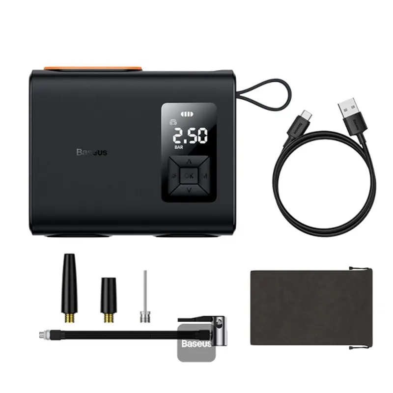 سرعت بالا و توان قدرتمند: باد کننده لاستیک ماشین بیسیم بیسوس با استفاده از یک سیلندر دوگانه که از آلیاژ ریخته گری ساخته شده و یک موتور پر قدرت 250 وات با سرعت 18000 دور در دقیقه باد را با سرعت بالا پمپاژ میکند؛ بدون افت فشار یک لاستیک تخت R195 را فقط در 3.5 دقیقه باد میکند. با استفاده از 4 نازل مختلف، میتوانید این دستگاه را برای کاربردهای متنوعی از جمله باد کردن خودرو، موتور سیکلت، دوچرخه و توپهای ورزشی استفاده کنید.