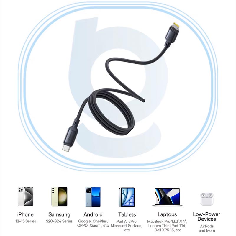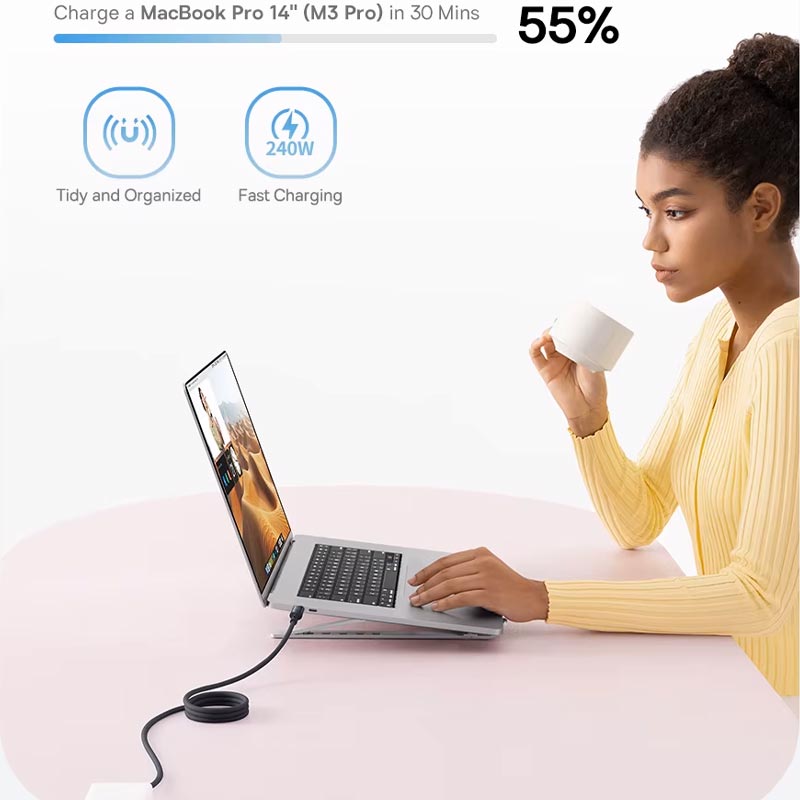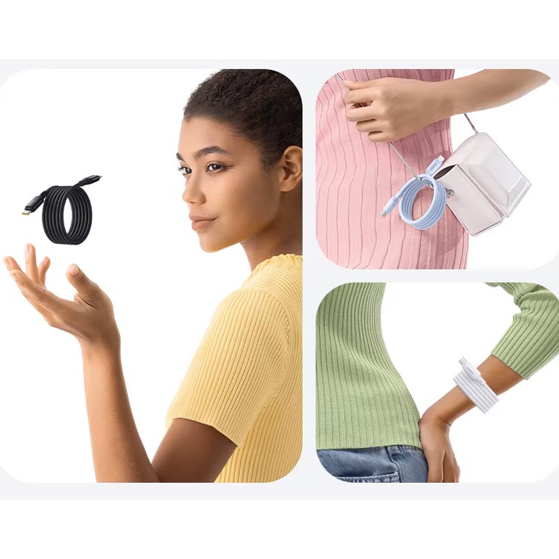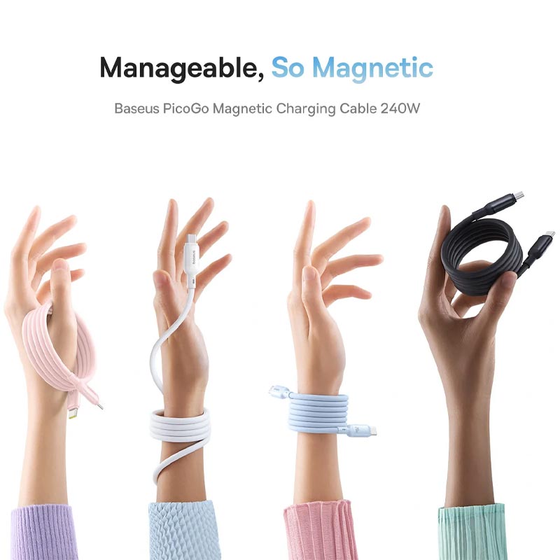 کابل USB-C خود سیم پیچ مغناطیسی Baseus PicoGo برای تجربه ای بدون درهم و برهمی با مقاومت 10/000 بار در برابر خمش تست و تولید شده است. مکانیسم خود سیم پیچ مغناطیسی آن باعث می شود که کابل برای ذخیره سازی آسان جمع شود و از گره خوردن جلوگیری کند. ایده آل برای کسانی که به دنبال بهترین کابل شارژ سریع مغناطیسی هستند، عملکرد صاف را با هر بار استفاده تضمین می کند. کابل Baseus PicoGo که با طیف گسترده ای از دستگاه ها از جمله iPhone 16، Samsung Galaxy و Google Pixel و.. سازگار است، چنانکه گوشی سامسونگ S24 اولترا را در 30 دقیقه 63 درصد شارژ می کند همچنین مک بوک M3 Pro را در 30 دقیقه 55 درصد شارژ می کند و دیگر نگران شارژ نشدن کابل USB نباشید,این کابل با پشتیبانی از دستگاههایی که به کابل شارژ سریع USB-C یا کابل C به نوع C نیاز دارند، برق و داده قابل اعتماد را انتقال میدهد.
