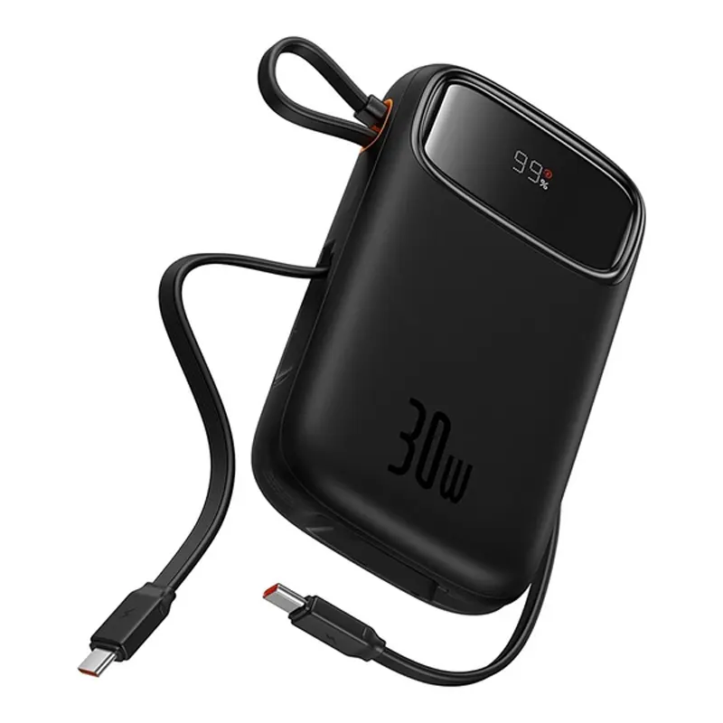پاوربانک 20000 باسئوس مدل Baseus Qpow2 PPQD4-20C مجهز به کابل های USB-C (30 واتی) و فناوری شارژ فوق سریع انحصاری Baseus است. علاوه بر کابلهای USB-C، یک درگاه تایپ سی و یک درگاه USB-A نیز وجود دارد که با تمام دستگاههای دارای این پورت سازگار است. پاوربانک بیسوس به شما امکان میدهد چهار دستگاه را به طور همزمان از طریق کابلهای همراه و پورتها شارژ کنید. پاوربانک باسئوس QPow2 را از طریق درگاه USB-C میتوانید در حدود 2 ساعت به طور کامل شارژ کنید. به علاوه، یک صفحه نمایش LED داخلی درصد باقیمانده باتری را نشان میدهد و ویژگیهای ایمنی پاوربانک باسئوس از شما در برابر مسائلی مانند جریان بیش از حد و ولتاژ اضافی محافظت میکند.