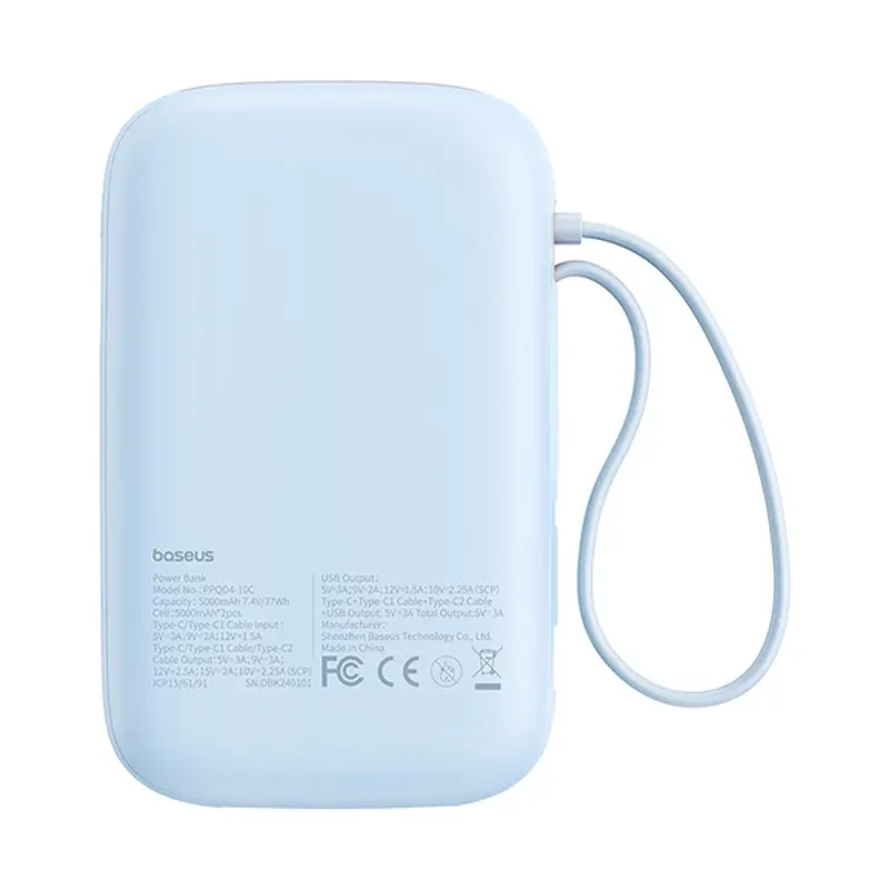 شارژر همراه 10000 بیسوس سری QPow2 مدل PPQD4-10C توان 30 وات در چهار رنگ مشکی با کد P10055008113-00، رنگ سفید با کد P10055009213-00، رنگ بنفش با کد P10055008513-00 و رنگ آبی با کد P10055008313-00 در ابعاد 32.8×74.6×123 میلیمتر و وزن 360 گرم طراحی و تولید شده و گزینه ایدهآلی برای شارژ همزمان 4 دستگاه می باشد. این پاور بانک با 2 کابل متصل به پاوربانک از نوع تایپ سی، راه حل مناسبی برای کسانی است که به شارژ سریع و آسان نیاز پیدا میکنند. از ویژگیهای پاوربانک باسئوس مدل Qpow2 PPQD4-20C میتوان به کابلهای داخلی و نمایشگر یکپارچه اشاره کرد. این پاوربانک سبک و قابل حمل است، بنابراین به راحتی میتوانید آن را در حین حرکت همراه خود ببرید. با بررسی بیشتر این پاوربانک همراه ما باشید.