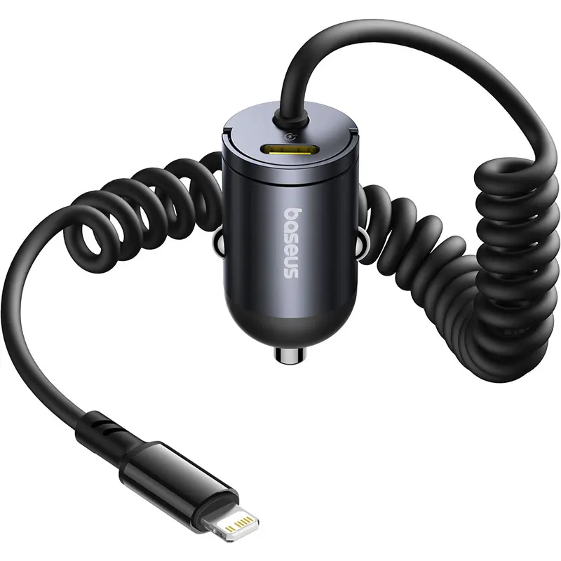 شارژر فندکی 30 وات بیسوس Tiny Star مدل VCHXX-C-L با کابل لایتنینگ فنری
