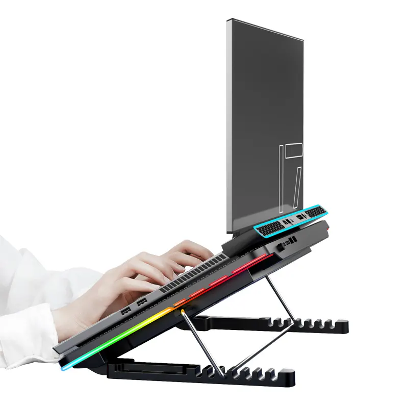 کولکلد F5 فراتر از یک خنککننده، یک استند ارگونومیک تمامعیار است. این مدل قابلیت تنظیم در ۷ زاویه مختلف را دارد که به کاربر اجازه میدهد دقیقترین حالت نمایشگر را برای جلوگیری از خستگی گردن و مچ دست انتخاب کند. سطح فلزی دستگاه در کنار پدهای نگهدارنده، پایداری کامل لپتاپ را در زوایای تند تضمین کرده و با کاهش مقاومت هوا، دفع حرارت را تسریع میبخشد.