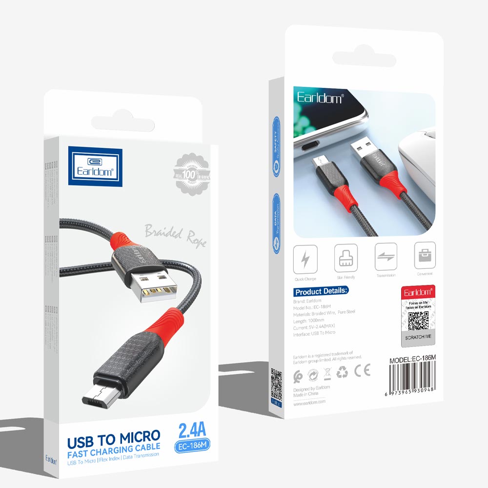 ویژگی های کابل میکرو یو اس بی فست شارژ Earldom EC-186M 2.4A 1m
