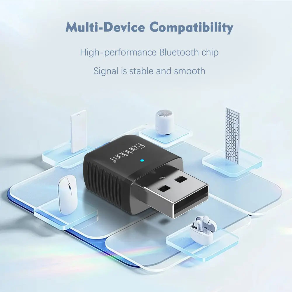 این دانگل از طریق رابط USB تغذیه میشود که نیاز به باتری داخلی و شارژ مداوم را به کلی حذف کرده است. این ویژگی باعث میشود عمر دستگاه در برابر حرارت بالای داشبورد خودرو (که دشمن باتریهای لیتیومی است) بسیار طولانیتر شود. پشتیبانی کامل از قابلیت Plug & Play به این معناست که بدون نیاز به نصب هیچگونه درایور یا تنظیمات پیچیده، به محض اتصال به درگاه USB صوتی، دستگاه آماده به کار خواهد بود. برد اتصال ۱۰ متری آن نیز آزادی عمل کامل را به سرنشینان خودرو برای مدیریت موسیقی میدهد. ⚡