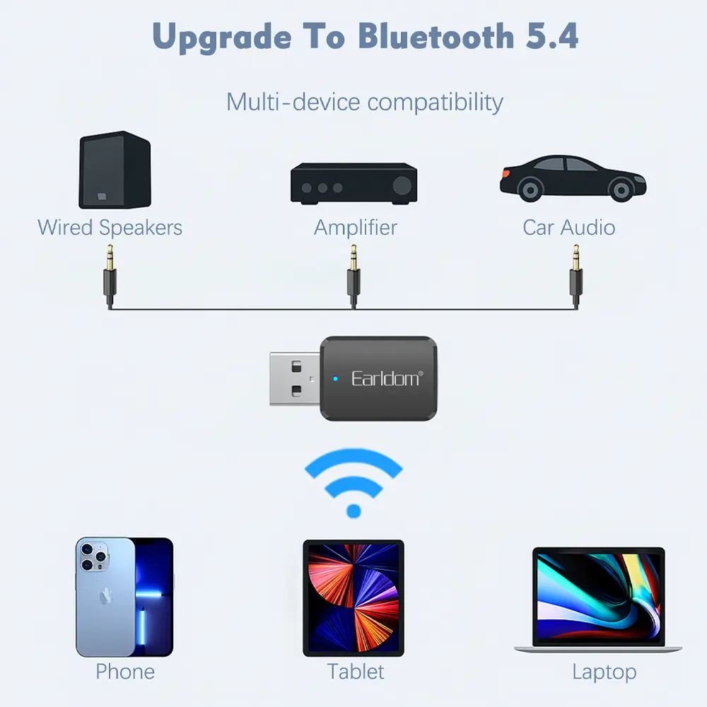 به عنوان یک مرجع تخصصی، باید صراحتاً بر این نکته تأکید کنیم که ET-BR28 یک Audio Receiver (گیرنده صوتی) است و نه یک دانگل دیتای بلوتوث. معماری این چیپست منحصراً برای دریافت سیگنالهای صوتی و تبدیل آنها به خروجی آنالوگ AUX طراحی شده است. لذا توجه داشته باشید که این بلوتوث برای سیستمهای کامپیوتری و لپتاپ جهت انتقال فایل هیچگونه کارایی ندارد. اگر به دنبال اضافه کردن بلوتوث به کیس کامپیوتر برای شناسایی گجتهای هوشمند هستید، این مدل نیاز شما را برطرف نخواهد کرد؛ اما برای بلوتوثی کردن ضبط خودرو و اسپیکر، یکی از بهترین گزینههای بازار است. ⚠️