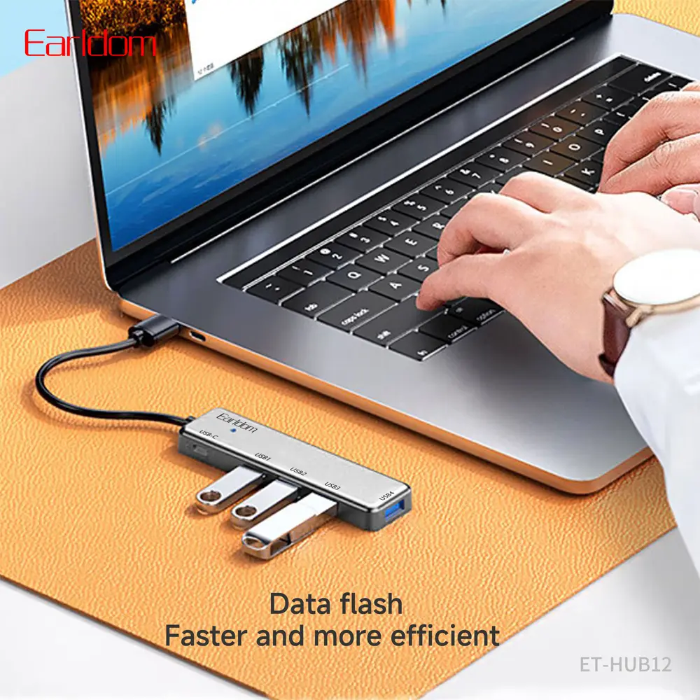 هاب Earldom ET-HUB12 با طراحی هیبریدی خود، مجموعهای از ۴ پورت USB 2.0 و یک پورت قدرتمند Type-C را در اختیار کاربر قرار میدهد. ویژگی رقابتی و برجسته این محصول، پورت تایپسی آن است که با پشتیبانی از سرعت خیرهکننده 5 گیگابیت بر ثانیه، انتقال فایلهای سنگین را در چند ثانیه ممکن میسازد؛ در حالی که سایر پورتهای USB با سرعت استاندارد 480 مگابیت بر ثانیه، بستری ایدهآل برای اتصال بدون تأخیر موس، کیبورد و چاپگر فراهم میکنند.