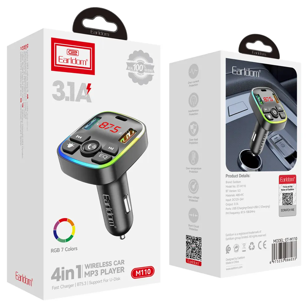Earldom ET-M110 4 IN 1 FM Wireless Car MP3 Player 3.1A