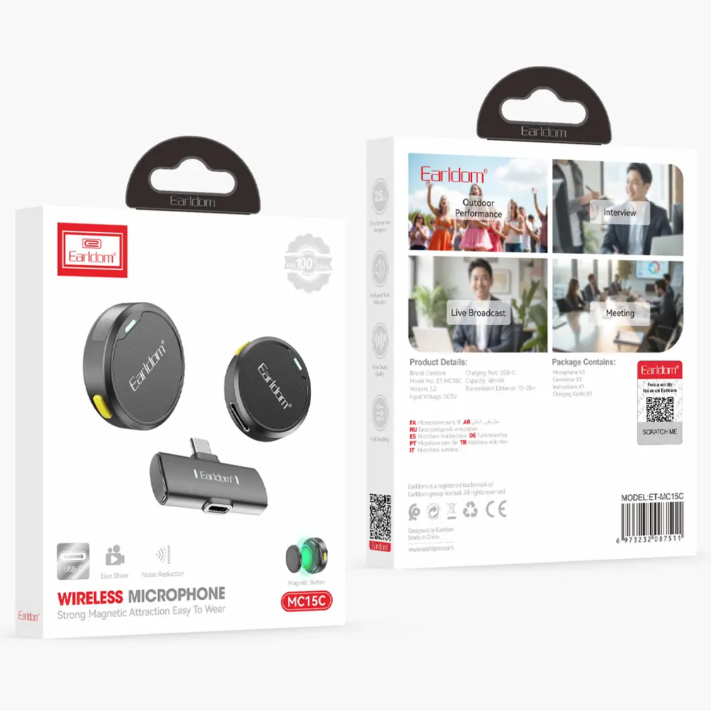 یکی از چالشهای اصلی در خبرنگاری و تولید محتوای میدانی، قطع و وصل شدن صدا در فواصل دور است. Earldom ET-MC15C با بهرهگیری از پروتکل انتقال پایدار، برد عملیاتی ۱۵ تا ۲۵ متر را پوشش میدهد. این ویژگی به ولاگرها آزادی عمل میدهد تا بدون نگرانی از افت کیفیت یا پیکسلی شدن صدا (Audio Artifacts)، از دوربین یا گوشی هوشمند خود فاصله بگیرند. سیستم Plug & Play این دستگاه نیاز به نصب هرگونه درایور یا اپلیکیشن جانبی را از بین برده و به محض اتصال به گوشی یا لپتاپ، آماده رکوردینگ حرفهای است.