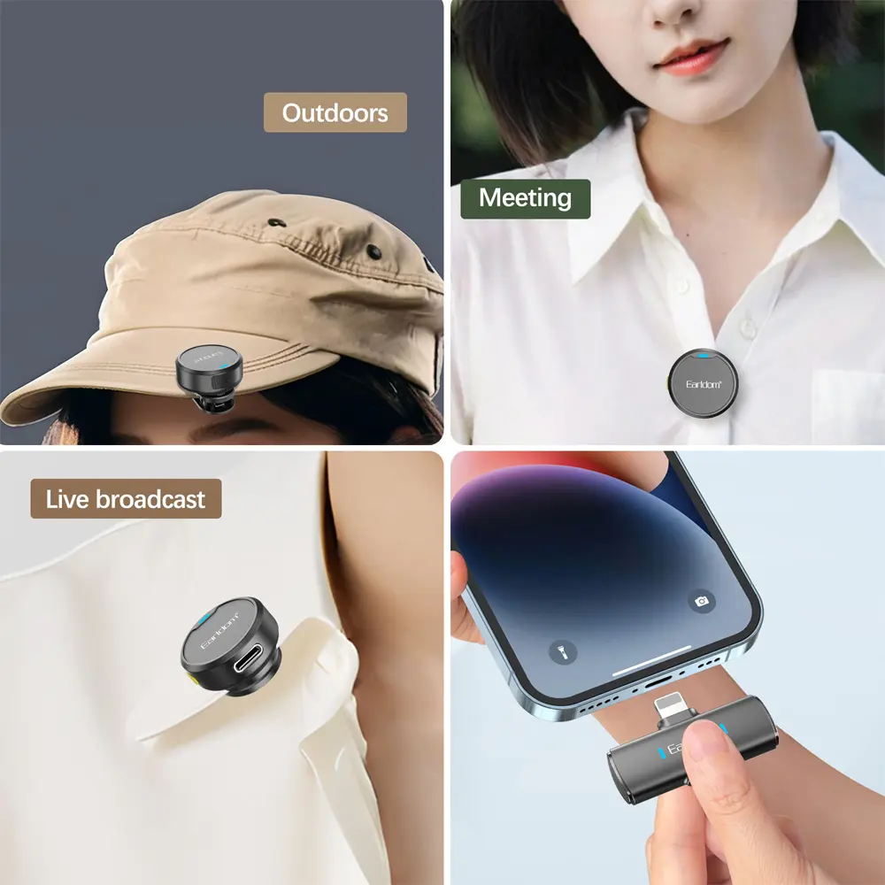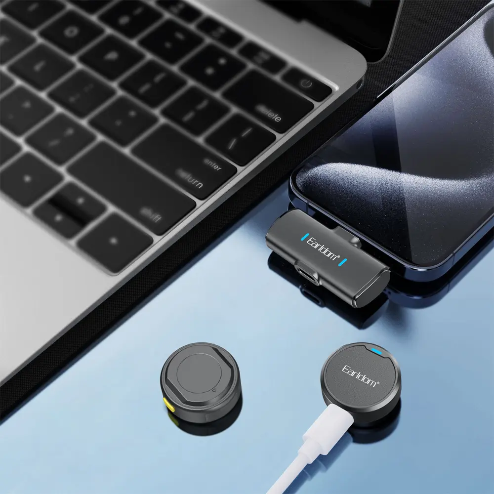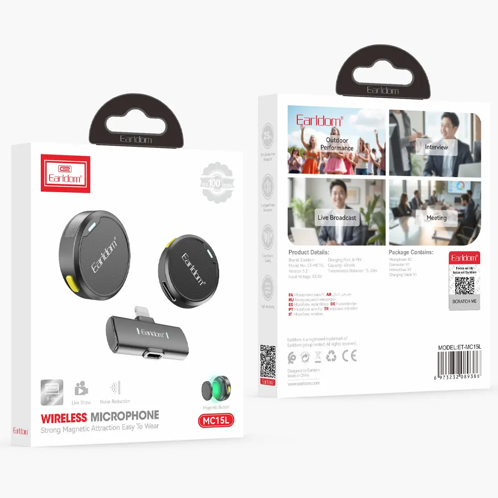 یکی از چالشهای اصلی دارندگان آیفون در ضبط ویدئو، محدودیت سیم و افت کیفیت در میکروفونهای بلوتوثی معمولی است. Earldom ET-MC15L با بهرهگیری از پروتکل انتقال پایدار، برد عملیاتی ۱۵ تا ۲۵ متر را پوشش میدهد. این ویژگی به ولاگرها و خبرنگاران اجازه میدهد بدون نگرانی از افت کیفیت سیگنال، از دوربین فاصله بگیرند. سیستم اتصال این دستگاه کاملاً Plug & Play طراحی شده است؛ یعنی بدون نیاز به نصب هیچگونه درایور، اپلیکیشن یا جفتسازی دستی (Pairing)، به محض اتصال گیرنده به درگاه لایتنینگ، دستگاه شناسایی شده و آماده رکوردینگ حرفهای است.