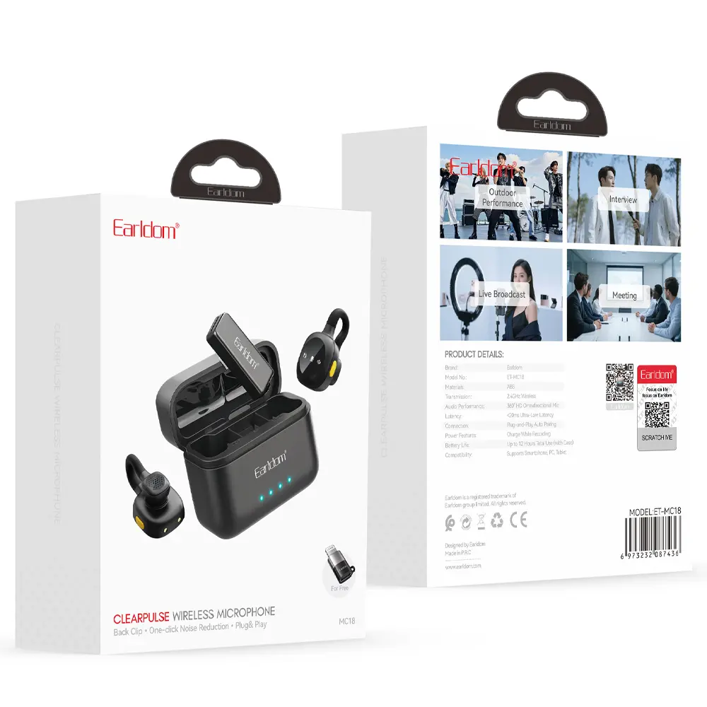 میکروفون یقهای بی سیم ارلدام مدل MC18 دوکاربره تایپ سی و لایتنینگ