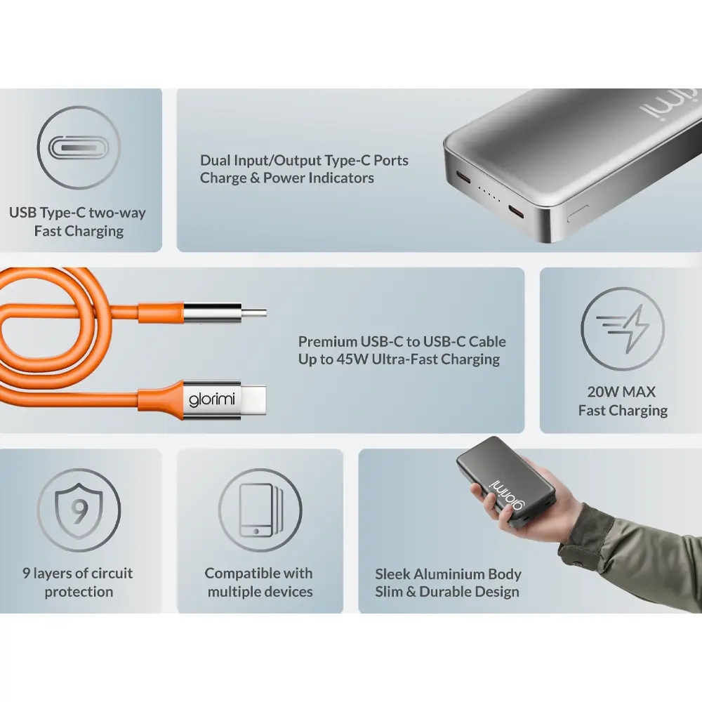 Glorimi FitCore 20000mAh Ultra Slim Power Bank 20W