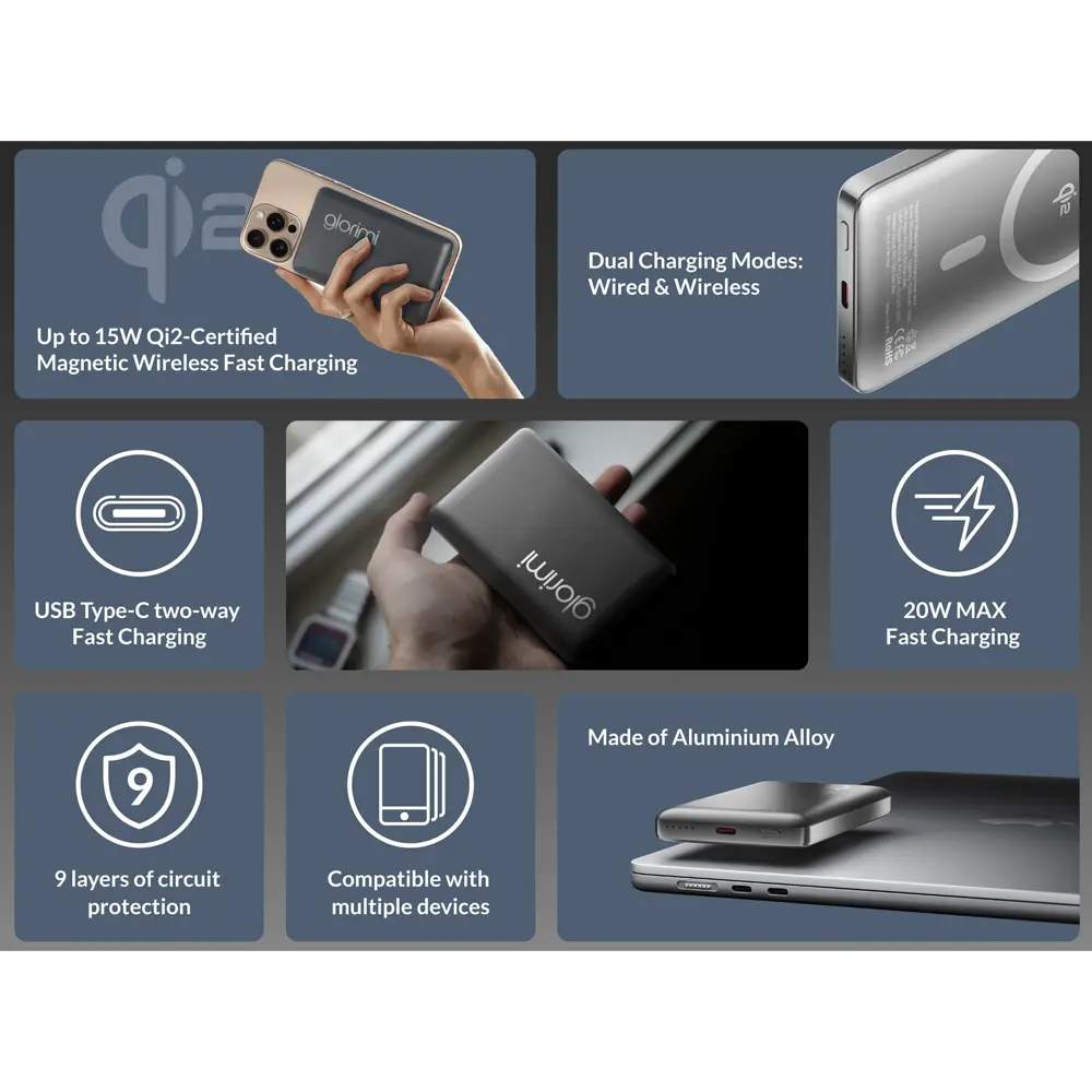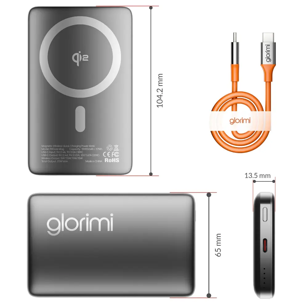 Glorimi FitCore Mag Qi2 10000mAh Super Slim Power Bank 20W