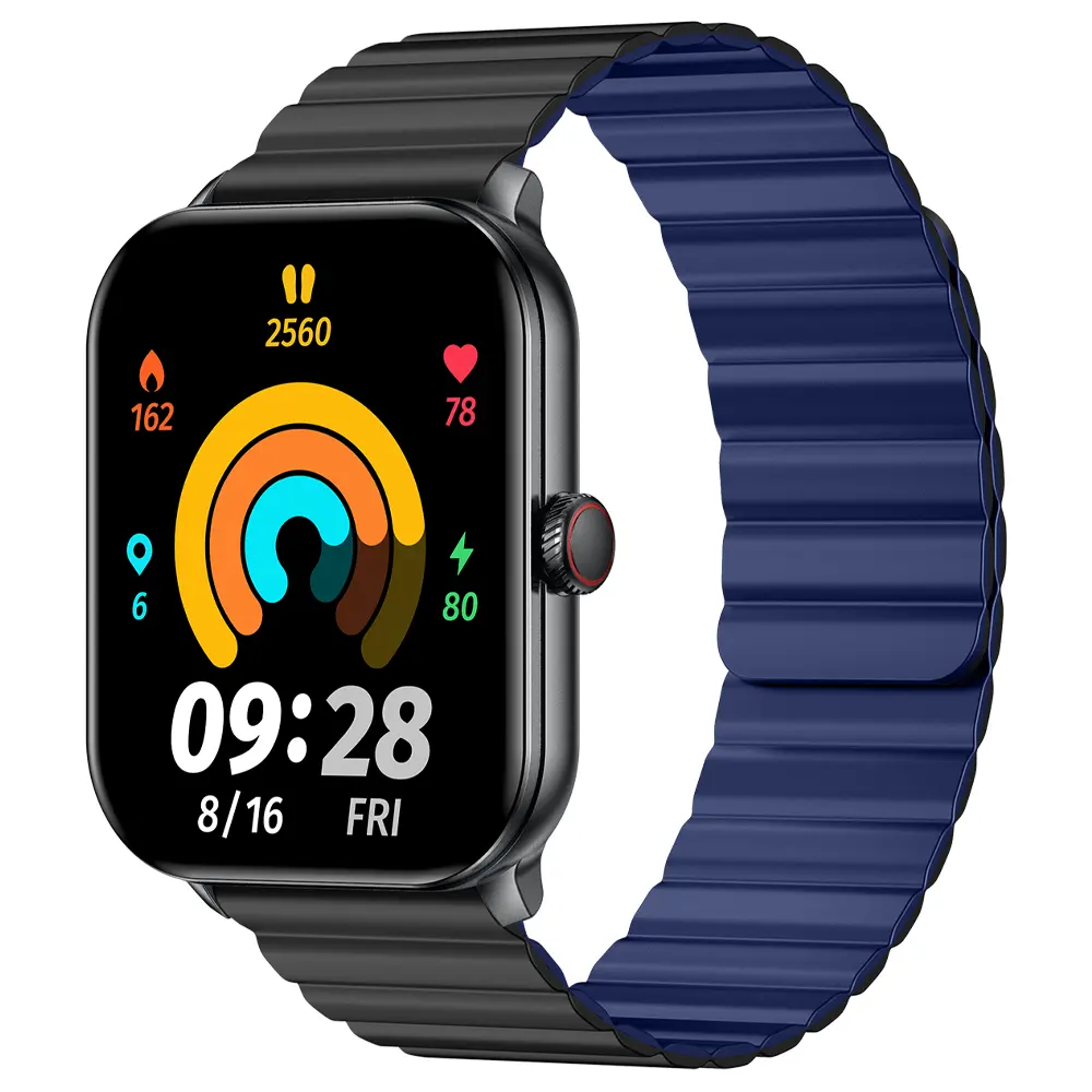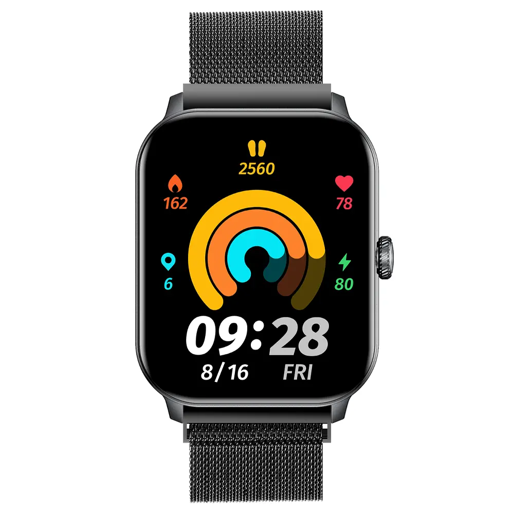 تمرکز بر کیفیت ساخت در GC Slim کاملاً مشهود است. قاب اصلی ساعت ترکیبی از مواد PC و Composite است که در کنار دکمهی چرخان (Rotating Crown Button) ساخته شده از فولاد ضدزنگ 304L، دوام و حس پریمیوم را القا میکند. یکی از مزیتهای رقابتی مهم این محصول، پکیج کامل بندهای دوتایی آن است: شامل یک بند مغناطیسی (یا استیل مغناطیسی) شیک برای استفادهی رسمی و یک بند سیلیکونی مایع برای فعالیتهای ورزشی. این قابلیت، ساعت را برای هر دو موقعیت رسمی و ورزشی کاملاً مناسب میسازد و انعطافپذیری بالایی به کاربر میدهد. شیشهی صفحه نیز از نوع 2D High Hardness Glass بوده و مقاوم در برابر ضربه و خط و خش است.