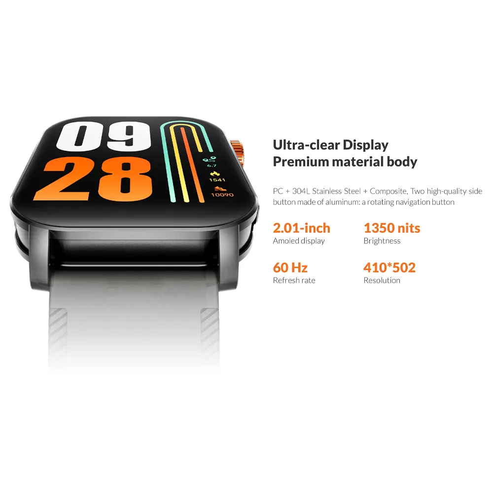 ساعت هوشمند گلوریمی مدل Glorimi Line فراتر از یک نمایشگر ساده روی مچ دست، با هدف ارائه عملکرد سریع و تعامل بصری سطح بالا طراحی شده است. این محصول با تجهیز به پردازنده دو هستهای (Dual-Core Processor) و موتور گرافیکی 2.5D Graphic Engine، تضمین میکند که پیمایش در رابط کاربری دینامیک (Premium Dynamic UI) کاملاً روان و بدون لگ انجام شود. مهمترین مزیت رقابتی و ویژگی کلیدی آن، نمایشگر 2.01 اینچی Ultra-Clear AMOLED با رزولوشن ۴۱۰*۵۰۲ پیکسل و نرخ نوسازی ۶۰ هرتز است که تجربهای خیرهکننده را فراهم میکند. با روشنایی فوقالعاده ۱۳۵۰ نیت (Sunlight Screen)، خوانایی در شدیدترین نور خورشید نیز تضمین شده است، که دغدغهی اصلی کاربران حرفهای در استفادهی خارج از محیط بسته را برطرف میکند.