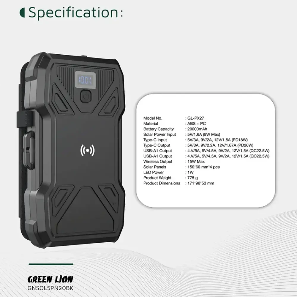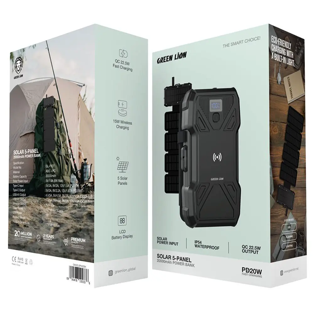 Green Lion Solar 5-Panel Power Bank 20000mAh PD 20W GL-PX27