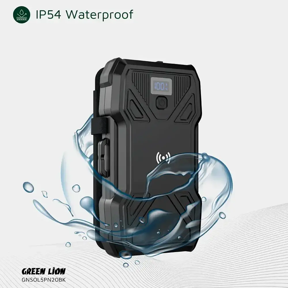 یک تجهیزات سفر حرفهای باید در برابر تغییرات جوی منعطف باشد. Solar 5-Panel گرین لاین با دارا بودن گواهی IP54، در برابر پاشش آب و ورود گرد و غبار محافظت شده است؛ بنابراین بارش ناگهانی باران در کمپ یا گرد و خاک بیابان خللی در عملکرد آن ایجاد نمیکند. همچنین، این دستگاه به یک سیستم روشنایی LED داخلی مجهز شده است که شامل سه حالت کاربردی Lighting (نور ثابت)، Flashing (چشمکزن) و حالت امداد SOS است. وجود نمایشگر LCD دقیق نیز به شما اجازه میدهد تا برخلاف نمایشگرهای خطی قدیمی، درصد دقیق باقیمانده باتری را در هر لحظه رصد کنید. 🔦