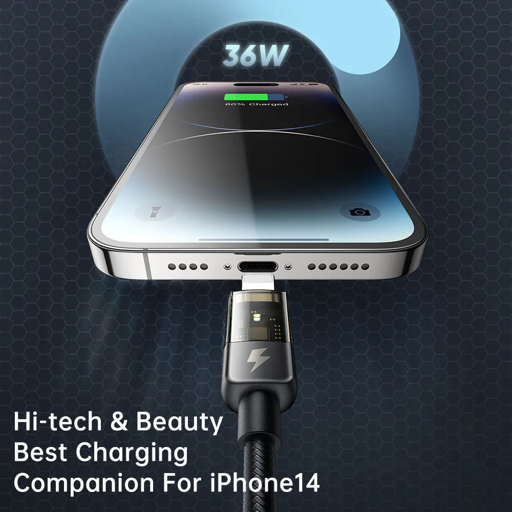 کابل تایپ سی به لایتنینگ فست شارژ 36 وات مک دودو CA-3160 طول 1.2 متر با طراحی بسیار جذاب و لاکچری به صورت ترنسپرنت و شفاف به طوری که تمامی اجزا مدار داخلی کابل قابل رویت است و استفاده از کانکتور های بسیار با کیفیت شما را قادر می سازد که علاوه بر شارژ کنترل شده گوشی تنها در مدت 30 دققیه با استفاده از استاندارد شارژ سریع PD گوشی آیفون خود را تا 60 درصد شارژ نمایید و دیتا را با حداکثر سرعت 480 مگابیت بر ثانیه جابجا نمایید. در ضمن دارای تکنولوژی Auto Power OFF است که نیم ساعت بعد از 100 درصد شدن شارژ گوشی شما عملیات شارژ را اتوماتیک وار قطع میکند و 2 ساعت بعد از فول شارژ در صورتی که شارژ گوشی شما کم شده باشد دوباره اتوماتیک عملیات شارژ را برقرار میکند.
