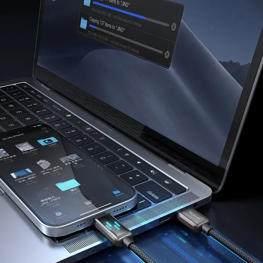 کابل شارژ تایپ سی به تایپ سی مک دودو مدل CA-4250 طول 1.2 متر توان 100 وات قابلیت CarPlay جهت پخش موزیک از ضبط خودرو و اتصال به سیستمهای رهیاب و برقراری تماس را دارد روکش بسیار محکم کنفی با نمایشگر ضربانی 4 حالته جهت نمایش وضعیت شارژ روی کانکتور کابل به شما کمک میکند تا از شارژ دستگاه مطمئن شوید و در تاریکی به راحتی کابل را پیدا کنید. کانکتورهای این کابل از مواد بسیار باکیفیت و مستحکم آلیاژ روی ساخته شده و در برابر آسیب و اکسیداسیون بسیار مقاوم هستند. روکش بافته شده با چگالی بالای کابل هم مانع گره خوردن و پارگی آن میشود. بخش اتصال کابل به کانکتور هم با پوششی محافظ پوشانده شده تا در صورت خمیدگیهای مکرر آسیبی نبیند؛ بنابراین از عمر مفید بالایی برخوردار است. طول کابل 120 سانتیمتر و از قدرت 100W/5A برخوردار است علاوه بر شارژ باتری موبایل و تبلت قابل استفاده برای لپ تاپ و دیگر دستگاههای دارای درگاه تایپ سی هم هست و در مدت زمان بسیار کوتاهی قادر به شارژ حداکثری باتری دستگاهتان خواهد بود. در ضمن قادر به انتقال داده با نرخ انتقال 480 مگابیتبرثانیه برخوردار است که در مدت زمان کوتاهی میتوانید اطلاعاتتان را بین گوشیهمراه و لپتاپ جابهجا کنید.