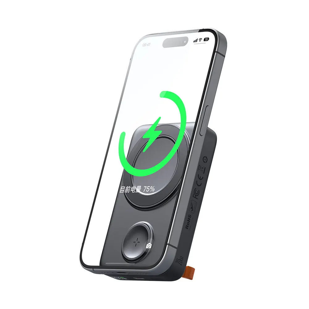 همانطور که گفتیم یکی از خروجیهای این پاوربانک، ناحیه دایرهای شکل بزرگی روی بدنه آن است که برای شارژ کردن انواع گوشیهای هوشمند و مخصوصا آیفون کاربرد دارد. این ناحیه با تمامی آیفونهای سری 12 به بعد سازگار است. همچنین از این ناحیه میتوان برای شارژ گوشیهای دیگری که به تکنولوژی شارژ وایرلس هستند استفاده کرد اما باید برای آنها یک کیس مگنتی مخصوص سازگار با مگ سیف تهیه کنید. توان خروجی این قسمت بسته به دستگاهی که روی آن قرار دارد 5، 7.5، 10 یا 15 وات خواهد بود. گوشیهای آیفون با حداکثر توان یعنی 15 وات شارژ خواهند شد.