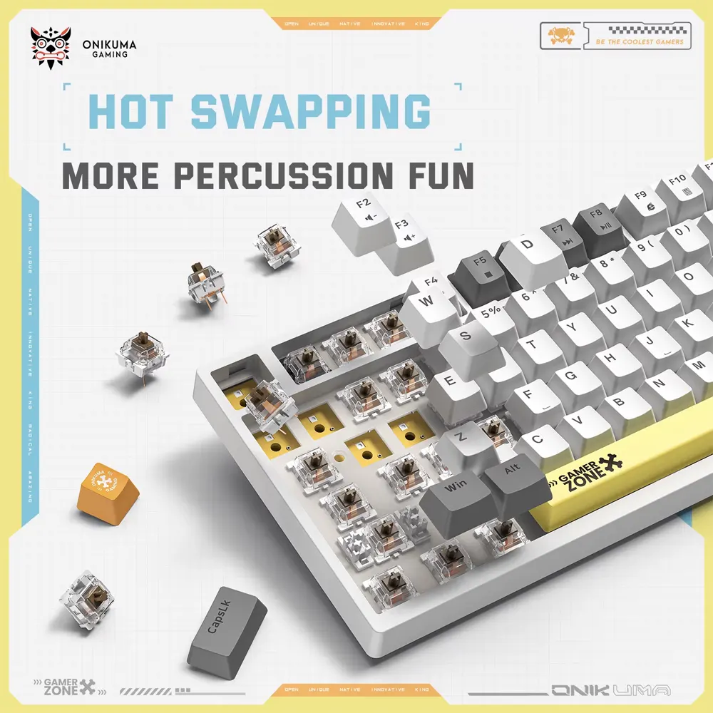 اونیکوما برای این مدل از سوییچهای مکانیکال قهوهای استفاده کرده است. این سوییچها نسبت به سوییچهای آبی، صدای کمتری دارند و بازخورد لمسی ملایمی ارائه میکنند. چنین ترکیبی برای کاربرانی که هم حس مکانیکال را میخواهند و هم از صدای بلند خوششان نمیآید، گزینه ایدهآلی محسوب میشود. 82 کلید اصلی تعبیه شده تا دسترسی به برخی عملکردهای متداول نظیر کنترل صدا، پخش موسیقی یا فراخوانی نرمافزارها آسانتر شود. عمر ضربهپذیری کلیدها تا 20 میلیون کلیک اعلام شده و این عدد برای کاربران حرفهای یا گیمرهایی که ساعتهای زیادی را پشت سیستم سپری میکنند، اهمیت زیادی دارد. وجود قابلیت مقاوم در برابر گرد و غبار هم تضمین میکند که کیبورد در شرایط محیطی گوناگون، دوام خوبی داشته باشد.