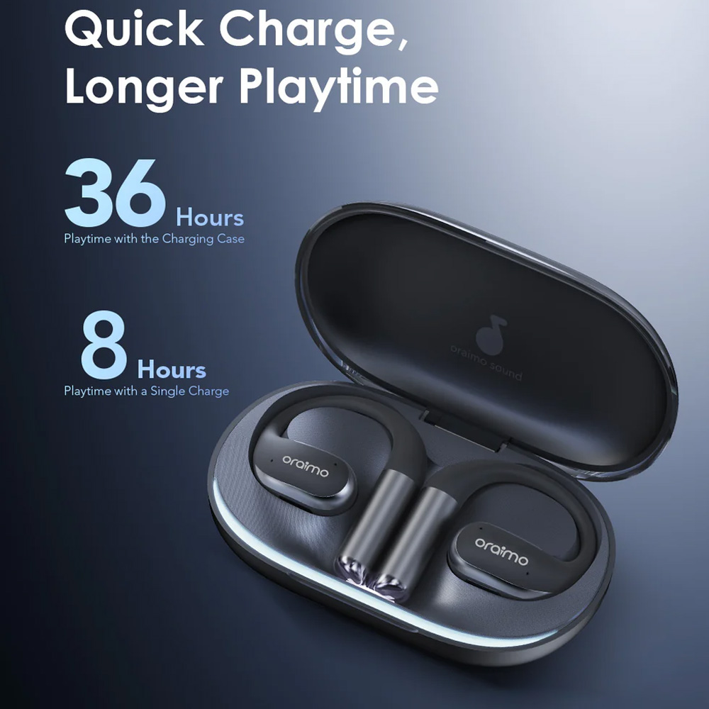 هندزفری القایی اورایمو علاوه بر راحتی، صدایی شفاف با باس قابل قبول از طریق درایورهای اختصاصی ارائه میدهد. با ۸ ساعت پخش مداوم تنها با یک بار شارژ هر ایرپاد و مجموع ۲۸ ساعت شارژ با استفاده از کیس، این محصول توان رقابتی بالایی را در کلاس خود نشان میدهد و کاربر را از شارژ مکرر بینیاز میسازد. این شارژدهی بالا در کنار طراحی Open-Ear، این محصول را به یک انتخاب عالی برای استفاده طولانیمدت جهت مکالمه آنلاین یا گوش دادن به پادکست در محیط کار تبدیل میکند.