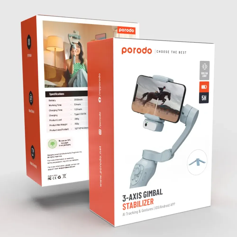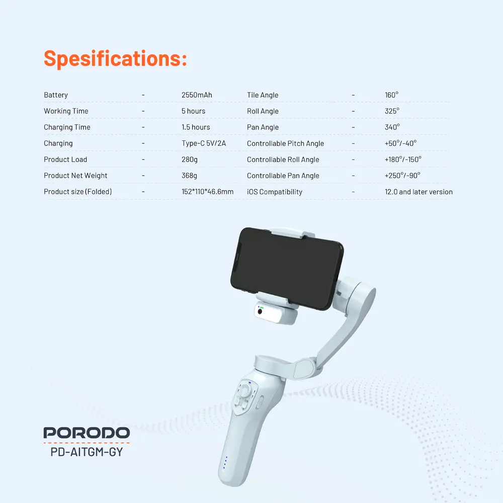 Porodo 3-Axis Ai Tracker & Light Gimbal stabilizer PD-AITGM-GY