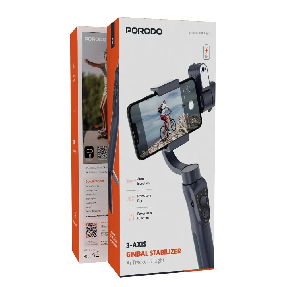 Porodo 3-Axis Ai Tracker & Light Gimbal stabilizer PDLFST035BK