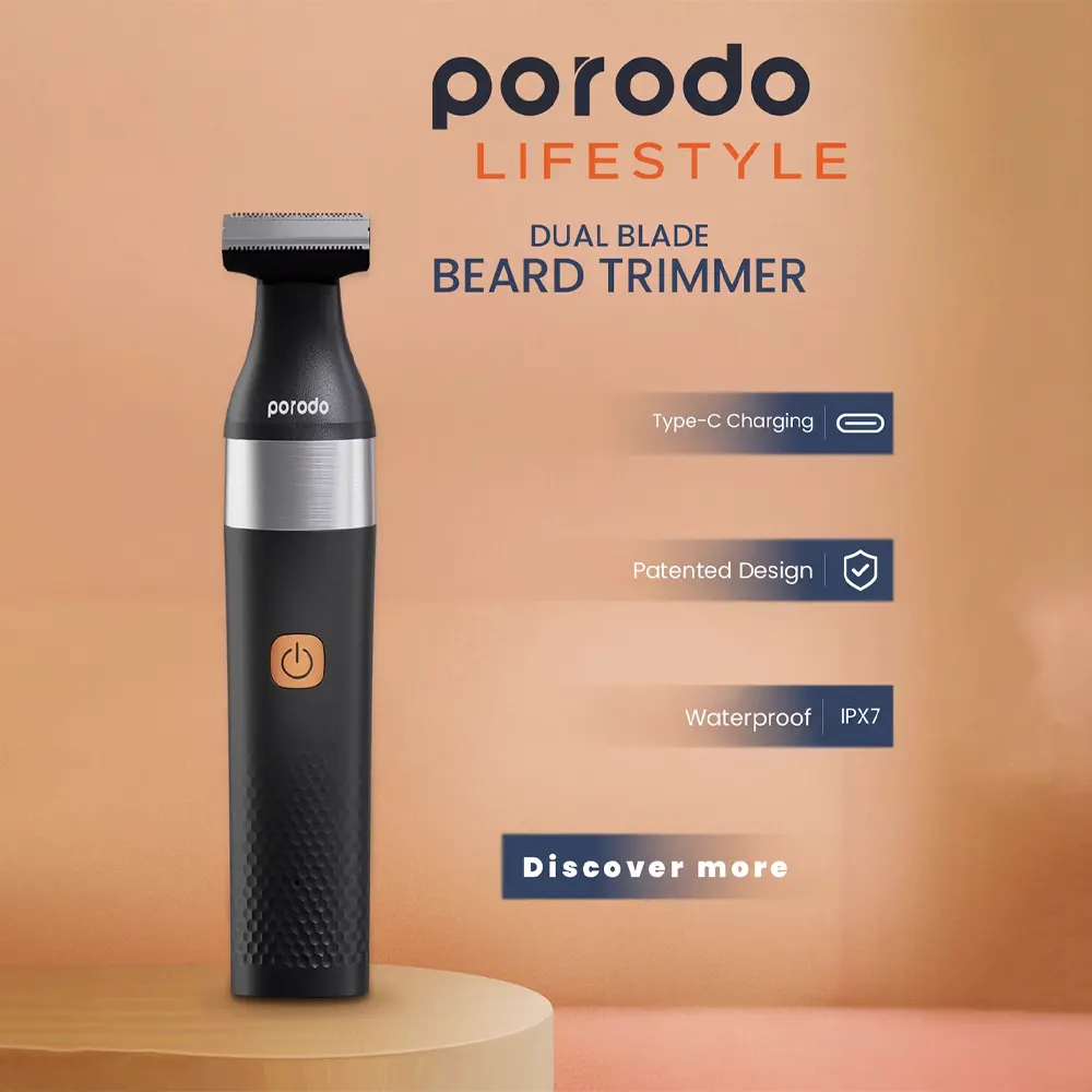 Porodo Lifestyle Dual Blade Beard Trimmer Smooth Seamless Shave PDLSROBTBK