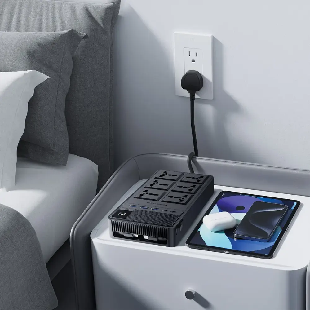 Powerology 2500W 6AC Power Strip with Built-In Retractable Cables PWCUQC030