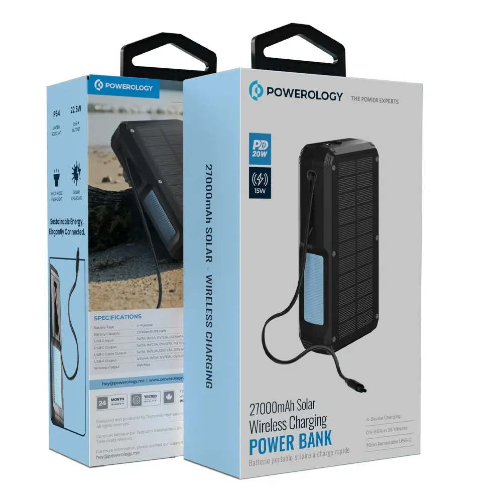 Powerology 27000mAh Solar Wireless Charging Power Bank PPBCHA77