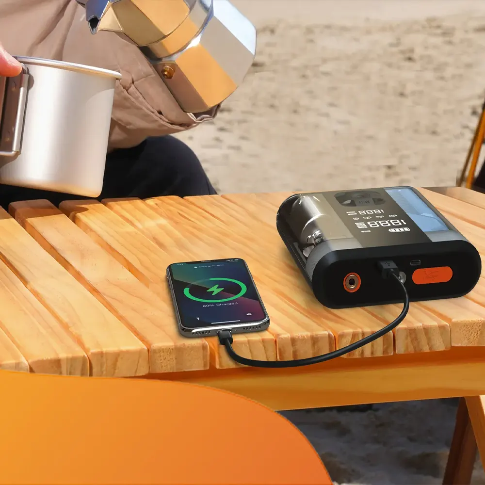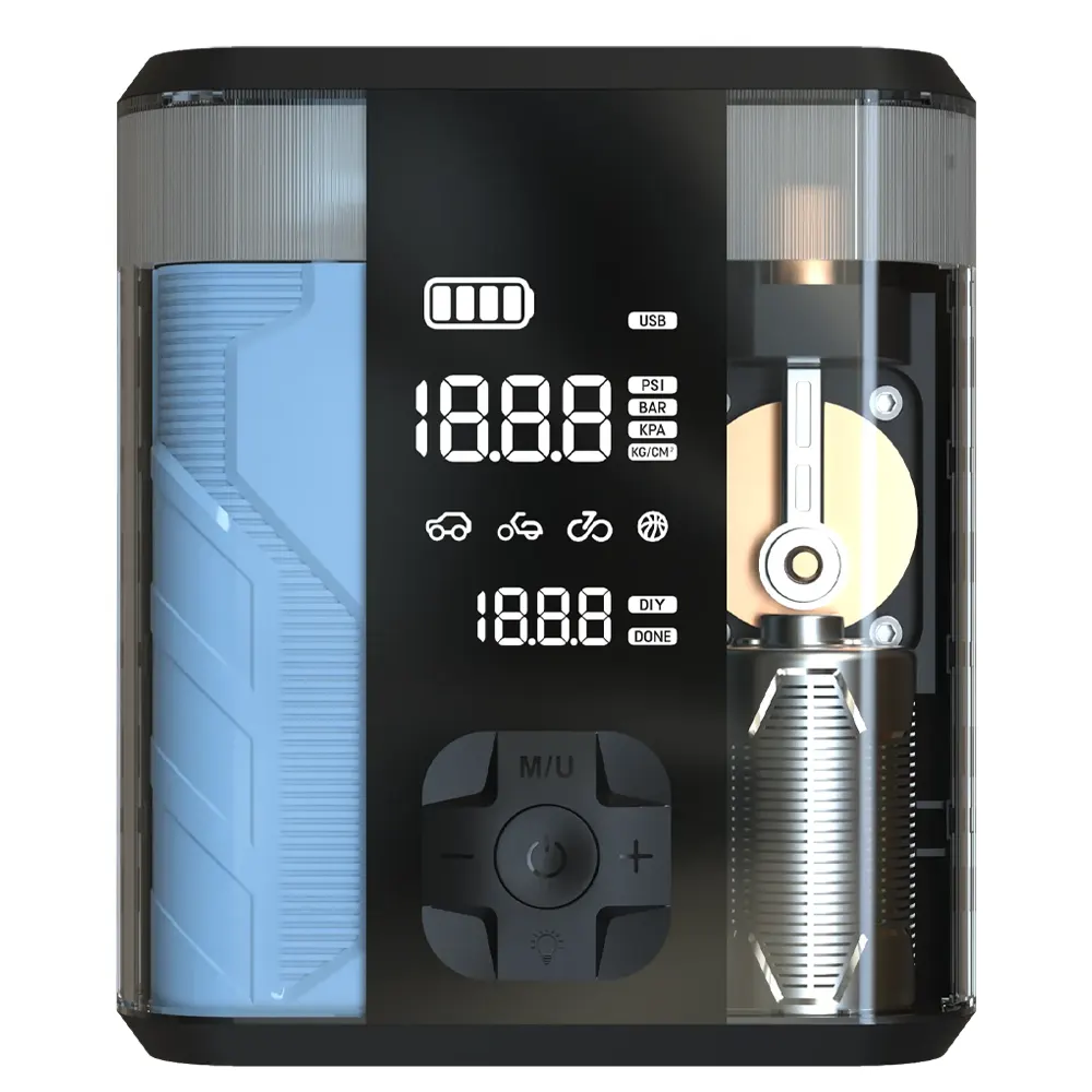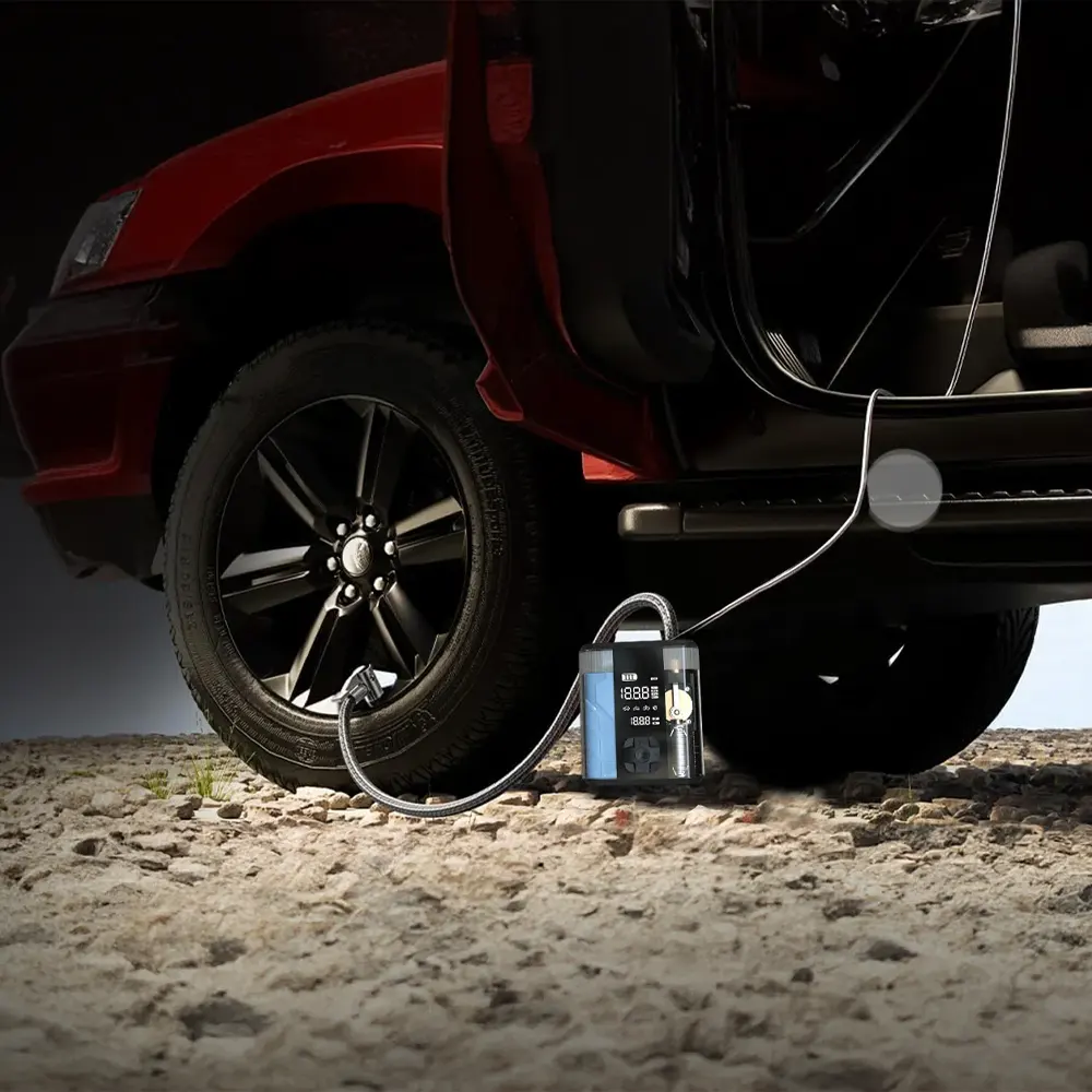 بخش پمپ باد این دستگاه با توان تولید فشار تا 150 PSI، پاسخگوی نیاز هر خودروی سواری و شاسیبلندی است. موتور داخلی تقویتشده آن اجازه میدهد تا تایر کاملاً خالی (Flat Tire) را با سرعت بالا و به صورت Rapid Inflation باد کنید. نمایشگر دیجیتال هوشمند دستگاه به کاربر اجازه میدهد فشار مورد نظر را تنظیم کرده تا پس از رسیدن به آن، تزریق هوا بهصورت خودکار قطع شود. این دقت عملکرد، از آسیب به لاستیک در اثر فشار بیش از حد جلوگیری کرده و ایمنی سفر را دوچندان میکند.