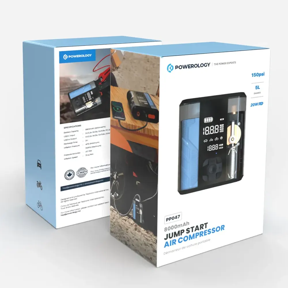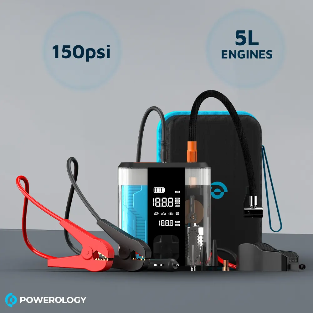 Powerology 8800mAh Jump Start Air Compressor Transparent PPBCHA47-TP