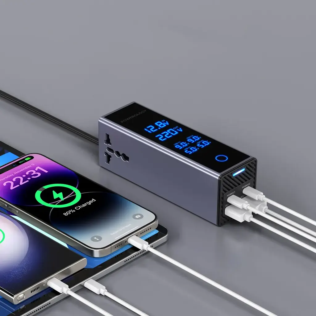 اینورتر فندکی پاورولوژی مدل PWCUQC044 با توان خروجی 300 وات، فراتر از یک مبدل معمولی عمل میکند. ویژگی رقابتی و حیاتی این دستگاه برای کاربران حرفهای، مجهز بودن به نمایشگر مانیتورینگ ولتاژ (Voltage Monitor Display) است؛ این قابلیت به شما اجازه میدهد لحظهبهلحظه وضعیت سلامت باتری خودرو و جریان مصرفی را پایش کنید تا از هرگونه آسیب احتمالی به بردهای حساس الکترونیکی جلوگیری شود. با این دستگاه، خودروی شما عملاً به یک میز کار مجهز تبدیل میشود که میتواند همزمان برق شهری ۲۲۰ ولت و شارژ سریع اختصاصی را فراهم کند.