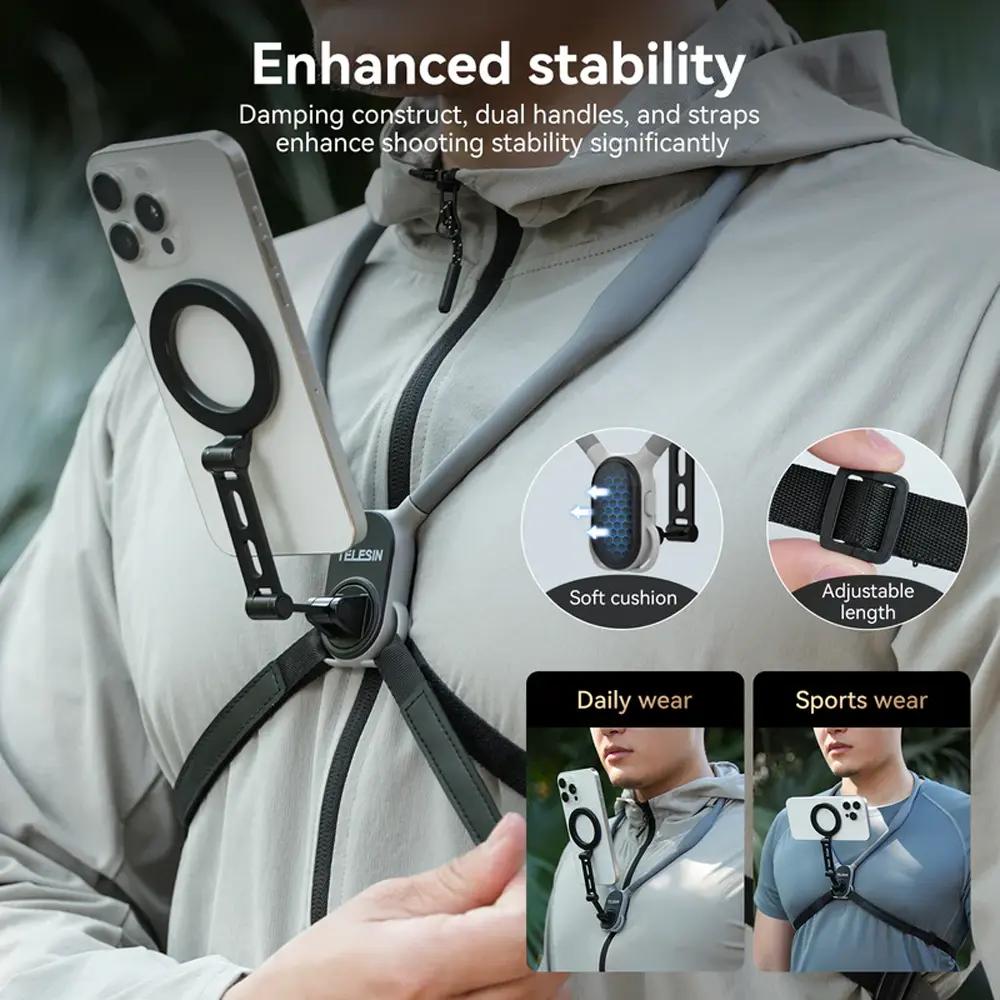 هولدر گردنی مغناطیسی TELESIN مدل MNM-002 پاسخی هوشمندانه به نیاز تولیدکنندگان محتوا و ولاگرهایی است که به دنبال ثبت ویدیوهای اول شخص (POV) بدون استفاده از دست هستند. این هولدر با تکیه بر مکانیزم قدرتمند و دقیق مغناطیسی، فرایند نصب و جداسازی دوربین یا موبایل را در کسری از ثانیه انجام میدهد؛ قابلیتی که در شرایط سریع فیلمبرداری میدانی یک مزیت رقابتی حیاتی محسوب میشود. طراحی ارگونومیک و وزن فوقالعاده سبک MNM-002 تضمین میکند که حتی در طولانیترین جلسات تصویربرداری، هیچگونه فشاری به گردن شما وارد نشود. این ابزار نه فقط یک نگهدارنده، بلکه یک تجهیز تخصصی است که به تولید محتوای داینامیک و باکیفیت کمک شایانی میکند، بهویژه برای فعالیتهایی مانند دوچرخهسواری، اسکی یا آشپزی که هر دو دست کاربر مشغول هستند.