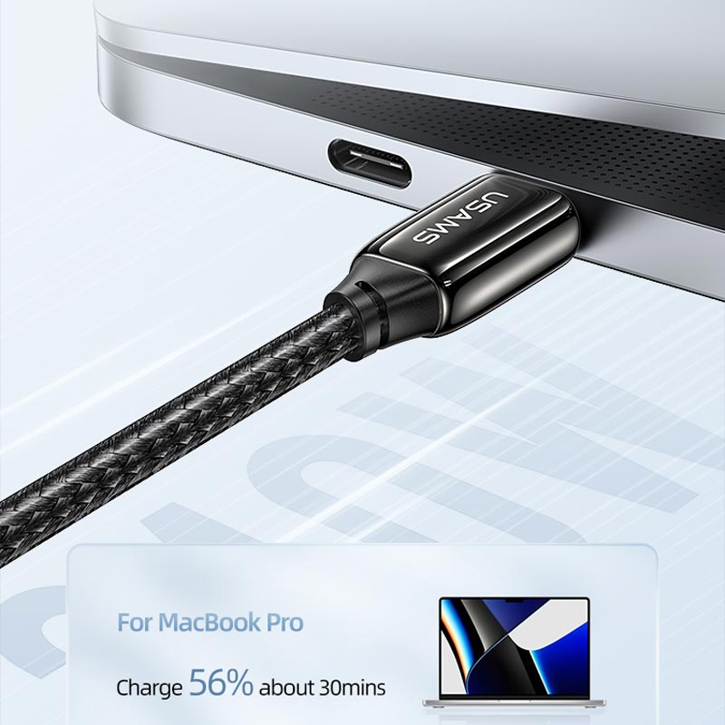 کابل usb-c یوسمز مدل Sj581 طول 2 متر با کد فنی U82 که هم قابلیت انتقال فایل با سرعت بالا را دارد و هم میتواند انواع لوازم الکترونیکی برندهای مختلف را که درگاه تایپ سی دارند، شارژ کند. علاوهبر توان بالا و کمنظیر، و امکان تأمین تا 48 ولت ولتاژ و 5 آمپر شدتجریان، کابل شارژ و دیتای یوسامز به فناوری شارژ سریع PD3.1 و پروتکلهای فستشارژ آیفون، سامسونگ، شیائومی، هوآوی و ... مجهز است. به این ترتیب میتواند دستگاههای متفاوتی را، از گوشی موبایل گرفته تا تبلت و لپتاپ، در کمترین زمان ممکن شارژ کند و برای نمونه از پس شارژ 56 درصدی مکبوک پرو درعرض تنها نیم ساعت بر میآید.