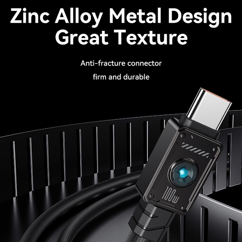 USAMS SJ684 Type-C To Type-C 100W Zine Alloy Cable with Light 1.2m