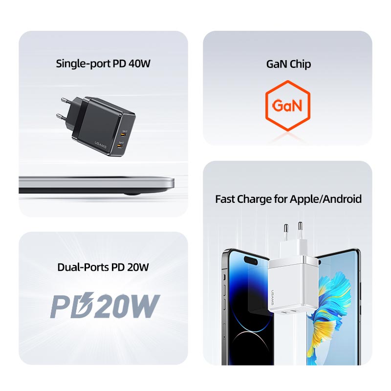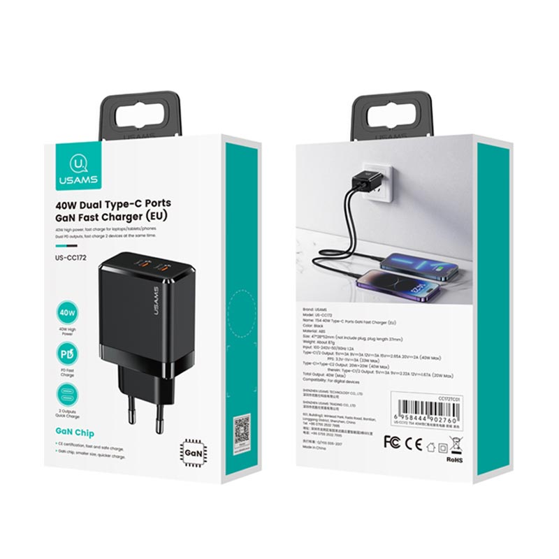 USAMS T54 US-CC172 40W Dual C GaN Fast Charger EU