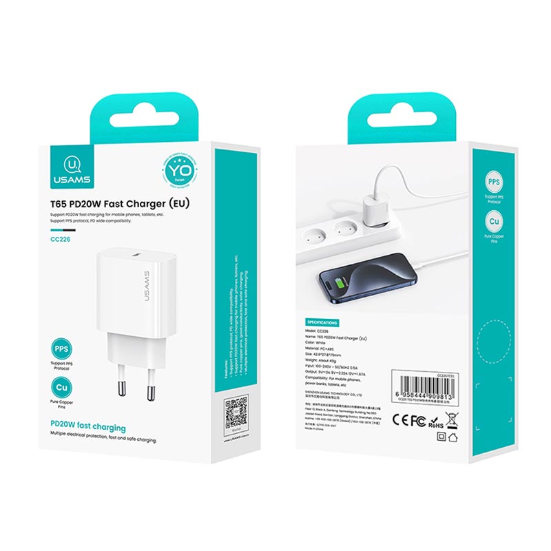 USAMS T65 US-CC226 PD20W Fast Charger EU