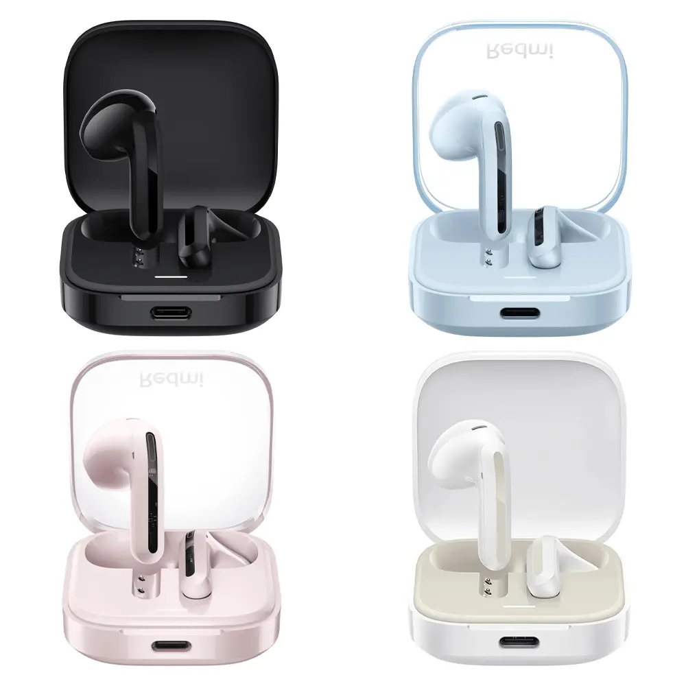 Redmi Buds 6 Active در چهار رنگ جذاب مشکی، سفید، آبی و صورتی عرضه شده است تا سلیقههای متنوع کاربران را پوشش دهد. ابعاد هر ایربادز است که به خوبی در کانال گوش قرار میگیرد. کیس شارژ نیز با ابعاد فشرده و وزن کلی (به همراه ایربادزها، وزن کلی ) بهراحتی در کوچکترین جیب یا کیف ورزشی جای میگیرد. این ابعاد کوچک، حمل آسان و بدون زحمت را برای کاربر فعال فراهم میسازد.