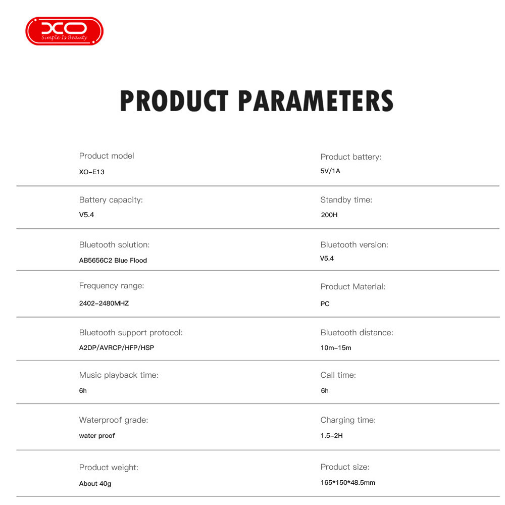 عینک هوشمند ایکس او مدل XO-E13 با ابعاد این عینک 165 در 150 در 48 میلیمتر و فقط 40 گرم وزن دارد. این عینک آفتابی از یک نوع لنز با شفافیت بسیار بالا UV400 و HD استفاده که از چشمان شما در برابر اشعه ماورابنفش یا UV نور خورشید به خوبی محافظت میکند. همچنین قابلیت های صوتی بی نظیر، طراحی بسیار زیبا، شیک و مدرن با استفاده از فناوری های جدید و پیشرفته، به کاربران امکان پخش موسیقی با کیفیت بالا، برقراری تماسهای تلفنی و کنترل دستگاههای مختلف را می دهد. این عینک با توجه به قابلیت های بی نظیرش، برای افرادی که به دنبال تجربه های جدید و بی نظیر هستند یک گزینه عالی محسوب می شوند.