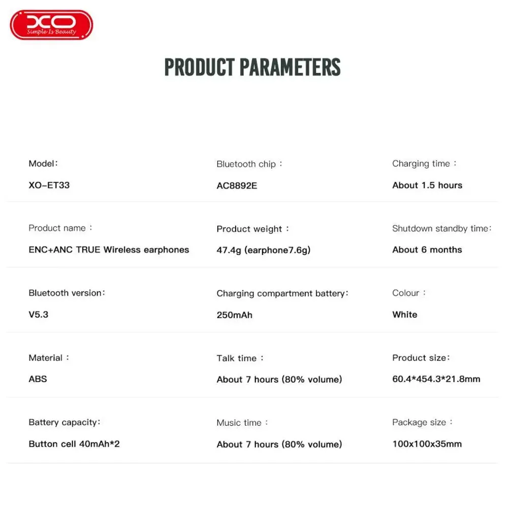 XO XO-ET33 ENC+ANC Wireless Earphone