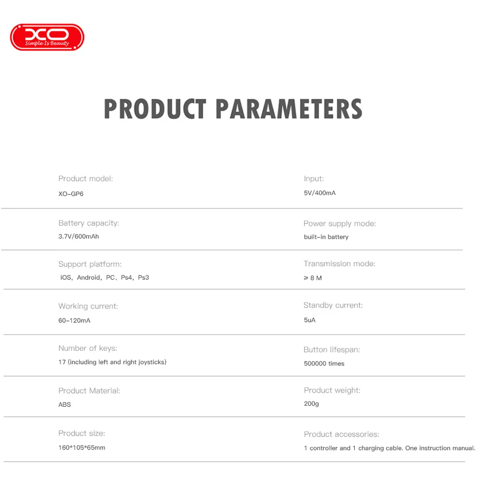 خلاصه مشخصات فنی گیم پد بی سیم ایکس او مدل GP6
